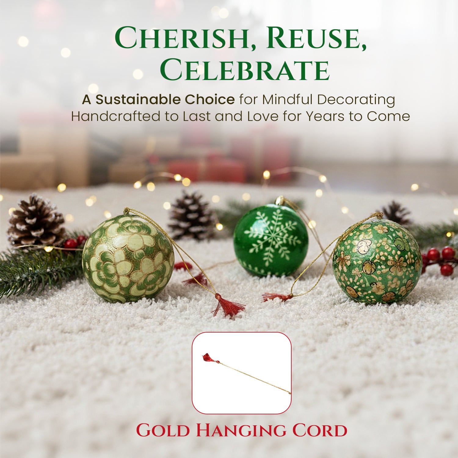 Hand Painted Papier Mache Christmas Baubles – Set of 3 Handmade Christmas Decorations, Eco-Friendly Presentation Box, Traditional Xmas Tree Decorations (Green)