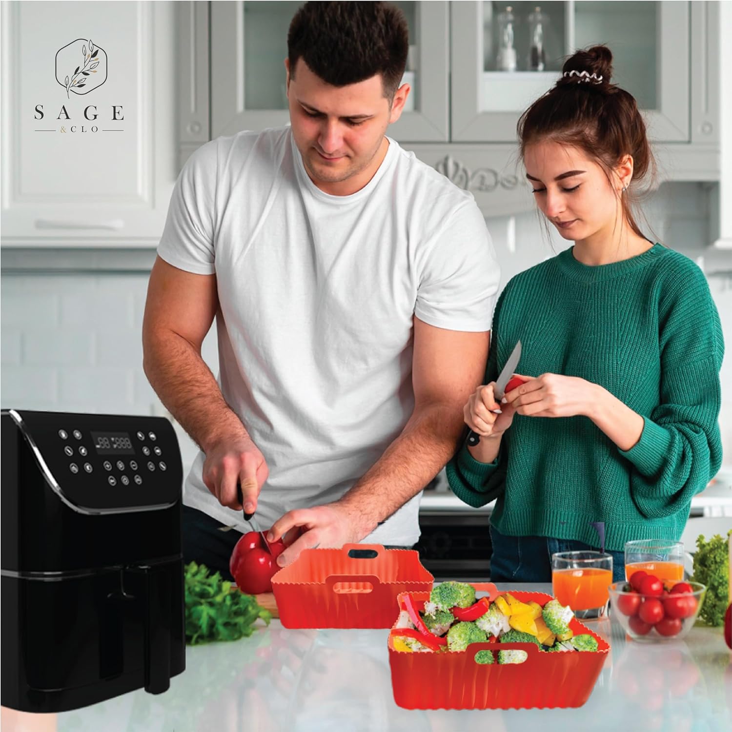 High-quality, heat-resistant food grade silicone liners which can withstand heat of up to 400℉, perfect for dual or stacked air fryers, ensuring efficient cooking and easy cleaning every time.